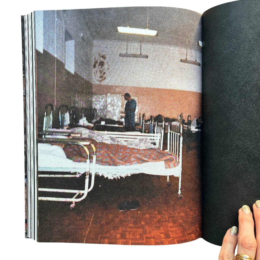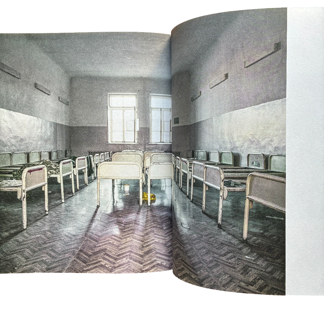 Since 2002, Kent Klich has documented the workings of one such institution that houses more than 1,000 people. He also collaborated with Aleksey Sakhnov, an artist and long-term resident whose drawings and photographs, as well as images of his papier-mâché houses, are included here. Leonid Tsoy, a psychologist who worked in the same network of institutions, contributes his study on “The Psychoneurological Asylums in Russia,” focusing on the relationships between normativity and violence.